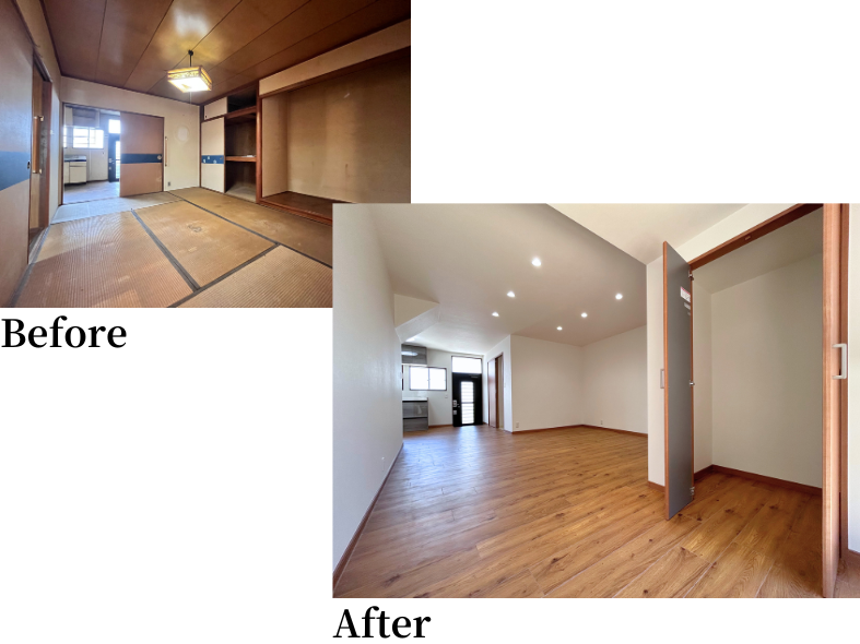 築49年の住宅がどのように生まれ変わったか、ビフォーアフターをご覧ください。